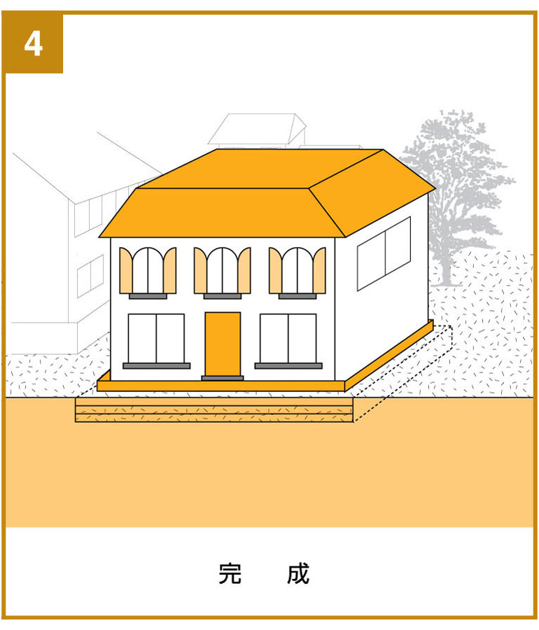 | 【標準基礎】 解析によって、住宅建設に良好な地盤と判断された場合には、規定されている標準的な基礎になります。 |